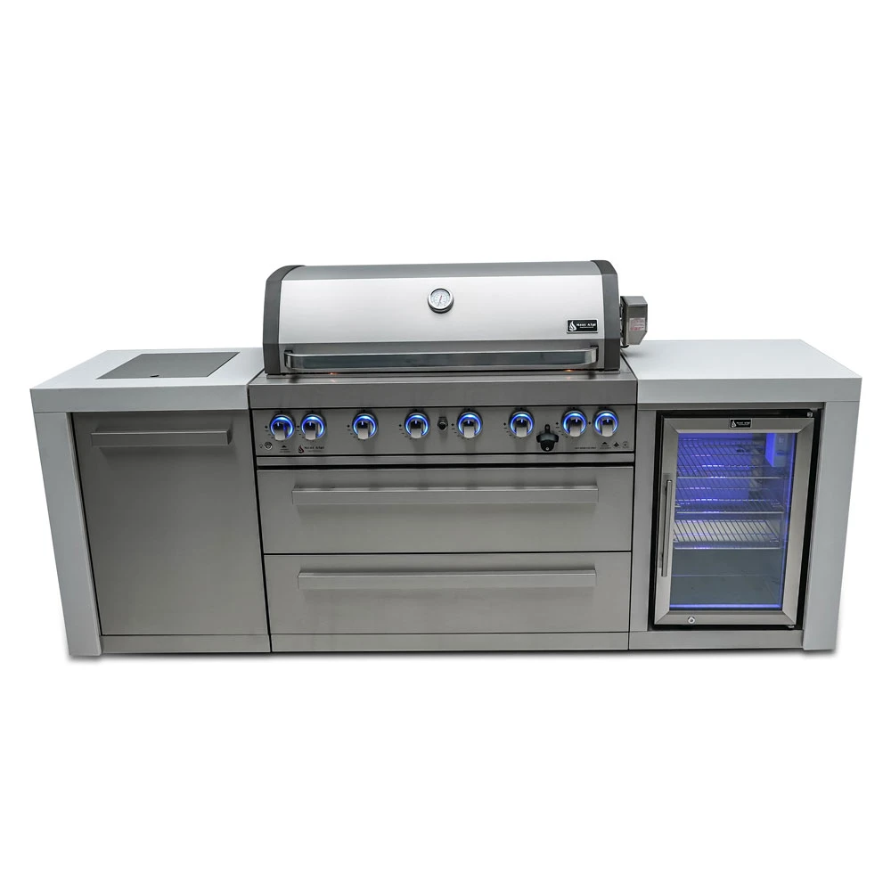 - Catagory: Mont Alpi > Outdoor Kitchens > Gas > Mont Alpi 805 6 Burner Deluxe Stainless Steel Kitchen Island | Infrared Side Burner | Fridge