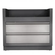Under grill cabinet suitable for the BILEX605 & BIPRO665 barbecue head, 2 drawers on roller slides, rear and side panels have removable knockouts for gas piping, stainless steel drawer fronts, adjustable levelling feet, supplied fully assembled.