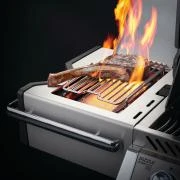 Take your outdoor cooking to new heights with the Napoleon Prestige PRO 500 RSIBPSS-3 Gas BBQ. This exceptional grill is designed for grilling enthusiasts who demand top-tier performance. Crafted with precision and durability in mind, its stainless steel construction exudes quality and elegance. The standout feature is the Infrared Sear Burner, which delivers intense heat for perfect sear marks on your favorite cuts of meat. Alongside the main burners, this BBQ offers precise temperature control and even heat distribution across its 500 square inches of cooking area. The integrated smoker tray allows you to add delicious smoky flavors to your dishes, while the LED control knobs and interior lights provide convenience and visibility during nighttime grilling. With its ample workspace, including side shelves and a built-in ice bucket, the Napoleon Prestige PRO 500 RSIBPSS-3 Gas BBQ ensures a seamless and enjoyable grilling experience for every culinary adventure.