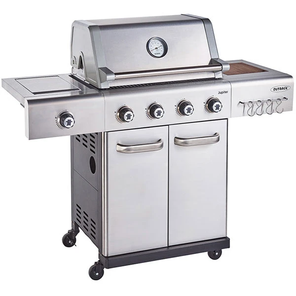 - Catagory: Outback > Barbecue/Smoker > Hybrid Gas/Charcoal > Outback Jupiter 4 Burner Hybrid Barbecue with Chopping Board | Stainless Steel